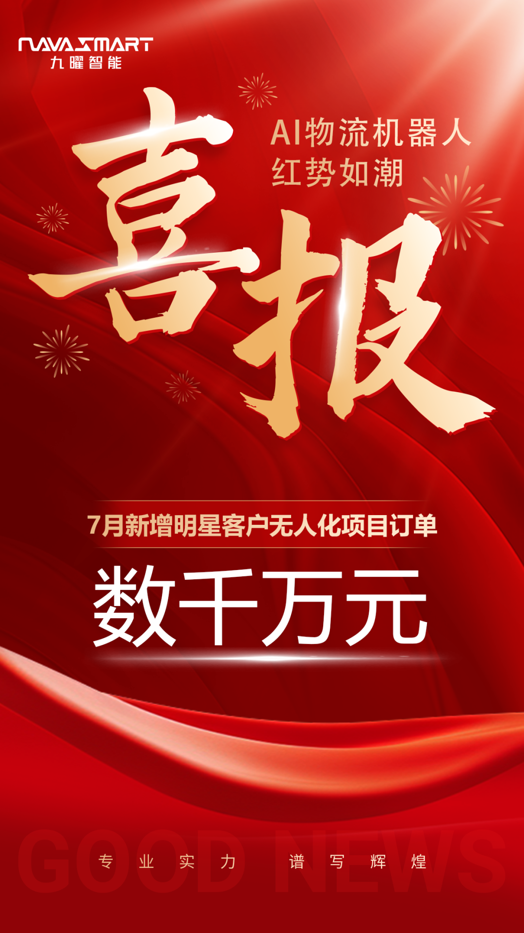七月開局,騰飛資本被投企業(yè)九曜智能與多家全明星客戶達(dá)成合作,新增數(shù)千萬銷售訂單,九曜智能將在場間物流領(lǐng)域持續(xù)發(fā)力,打造更多無人化標(biāo)桿項目。
